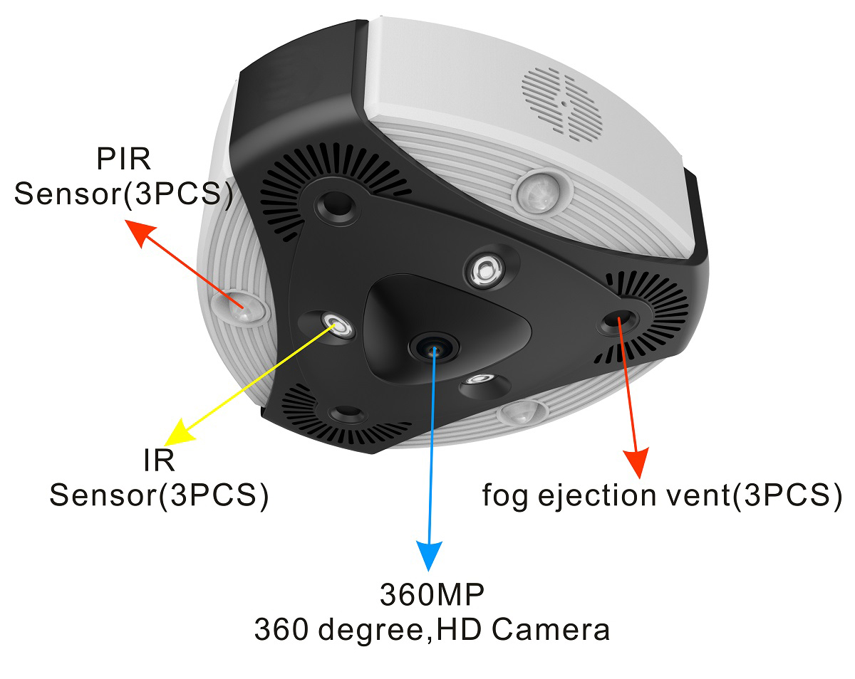 * Integrating PIR sensor, HD network camera with security fog generator;